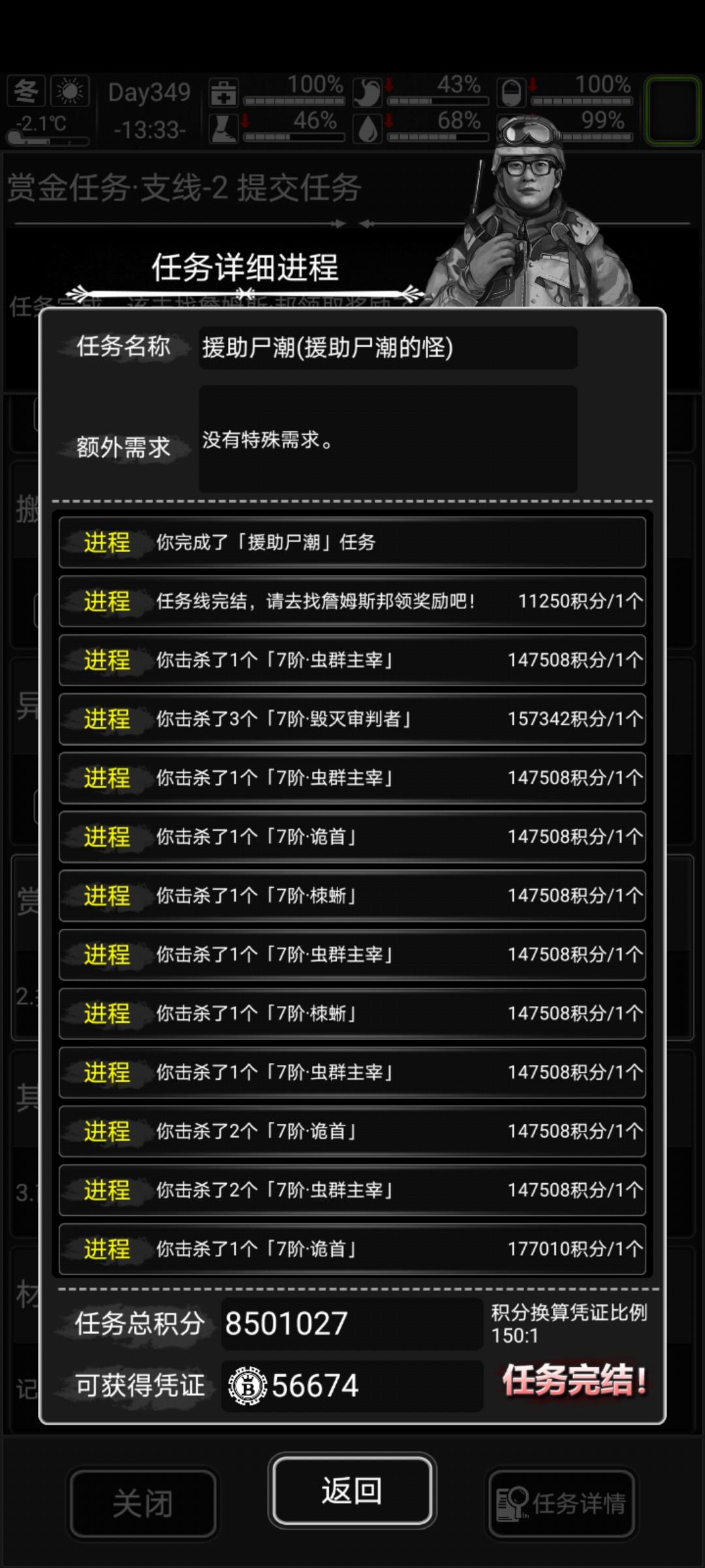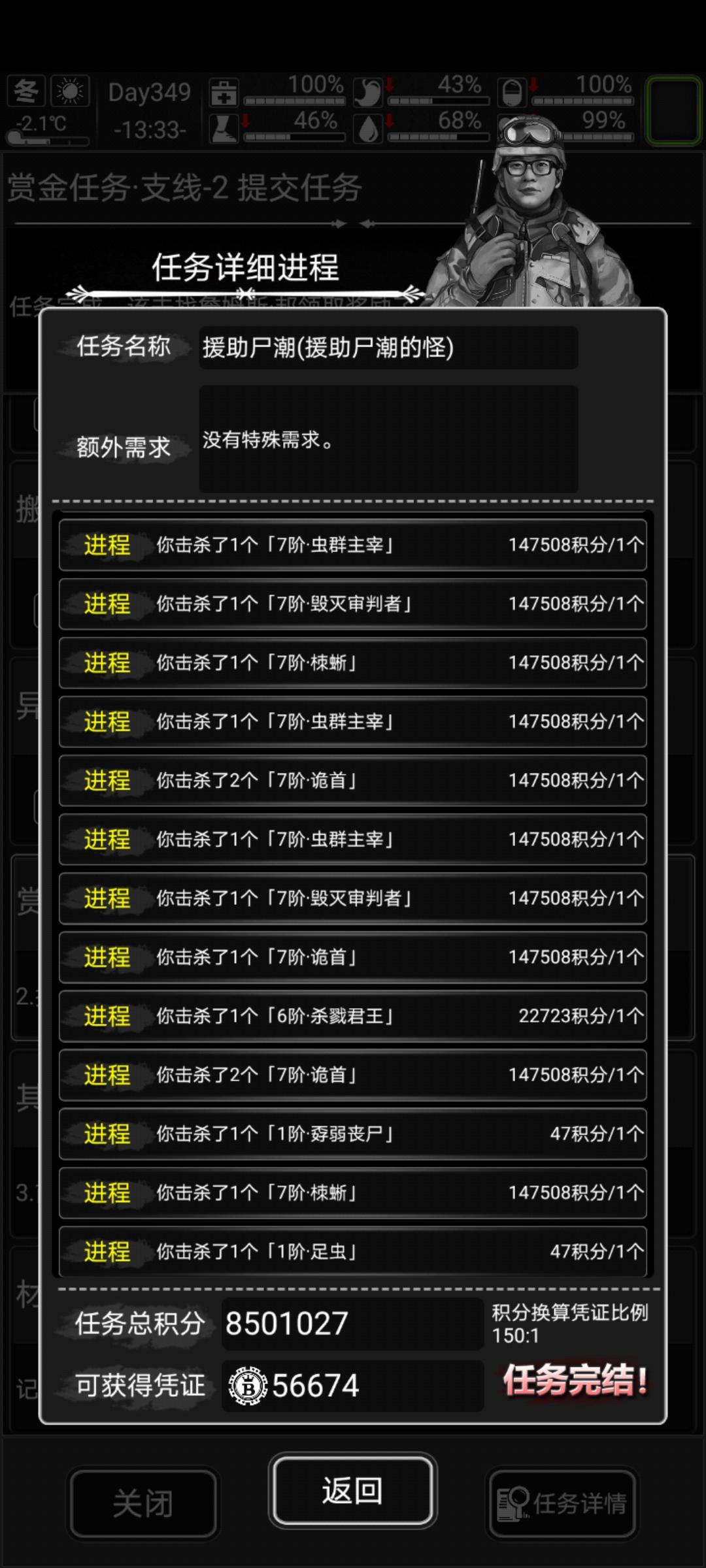 刷了一个下午终于刷完60个,可惜刚开始漏了3只。感谢安逸大佬的尸潮。