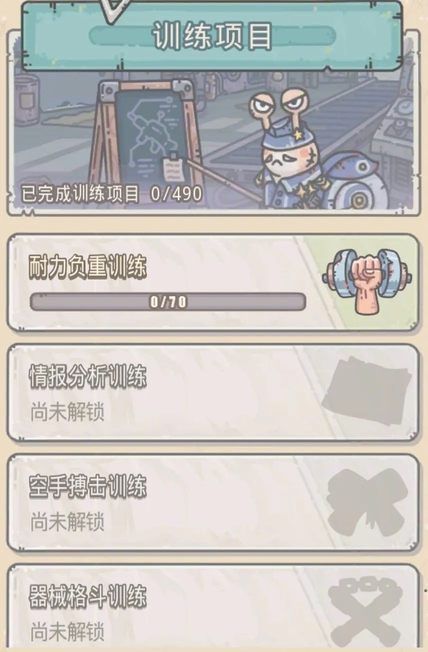 【训练项目】非常多,目前只能看到【耐力负重训练】,一共有三个方面
