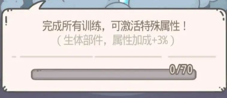 【耐力负重训练】共计消耗3600点荣誉,金令+30R玩家可以在2周后完成,进入下一个训练,其他类型玩家需要3周才能完成完成后可以获得这个提升【生体部件,属性加成+3%】