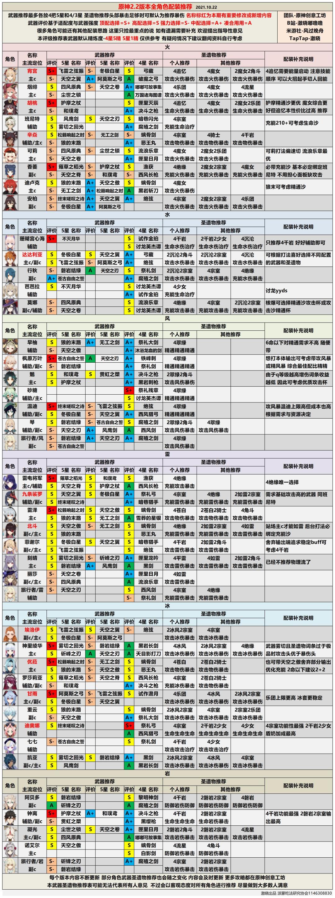 哈喽哈喽大家好,我是原神创意工坊的文案产出澈晓,今天为大家带来2.2版本的全角色评级配装推荐!