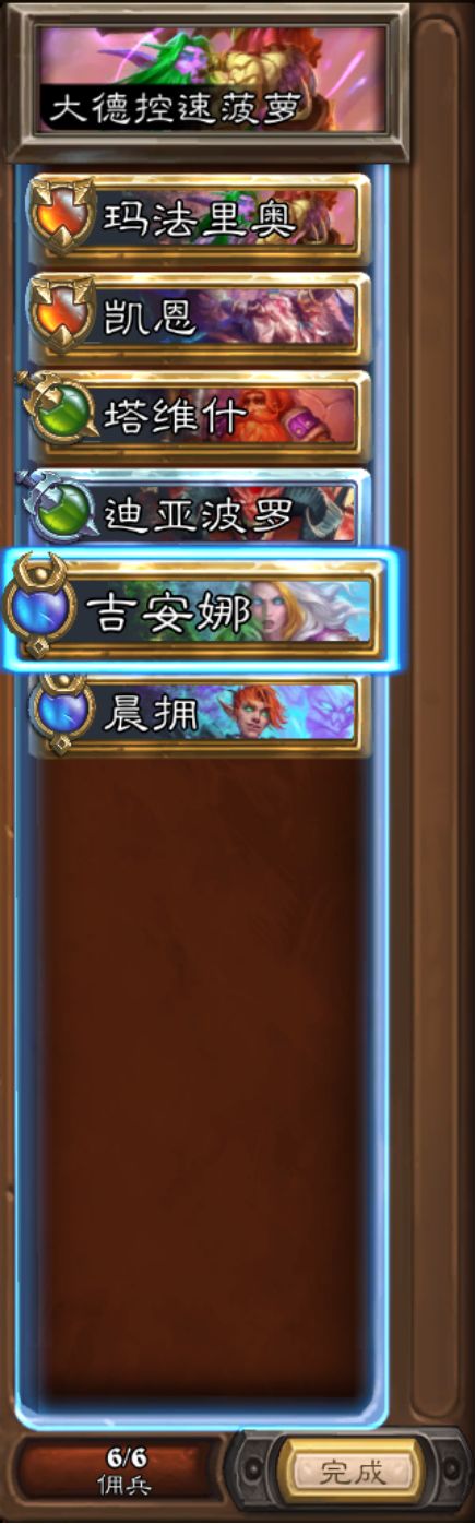 大德提速加奶量,晨拥减速,血蹄提速+减速,这一套在同为控速菠萝流的其他体系尤为吃香,可以稳定拿到先手,如果对方首发没有爆发伤害,或者回复伤害的话,很容易在首发的时候就被大德的奶量给磨掉一个,甚至对阵首发波罗,稳定先手也能把波罗给控死。同时凯恩·血蹄重生的存在让其不好成为第一个被集火的目标,后备迪亚波罗上场的时候可以稳定踩四下。晨拥亡语的存在,也给后备上场的佣兵做了铺垫。(当然高分段可能存在首发互抓的博弈,分段较低可以这么固定首发,分段较低,剑圣比较多。)当然如果环境中首发阵容护卫较多,也可以换成,雷矛,吉安娜,晨拥首发。