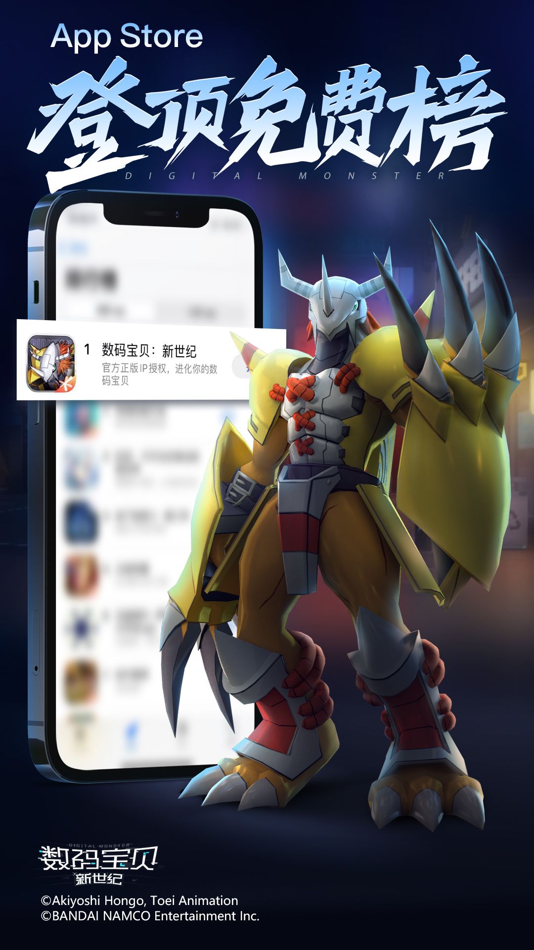 数码宝贝集结,一起究极进化!由东映动画正版授权,万代南梦宫(上海)娱乐有限公司联合奇侠互娱共同开发的《数码宝贝:新世纪》,登顶iOS免费下载榜!