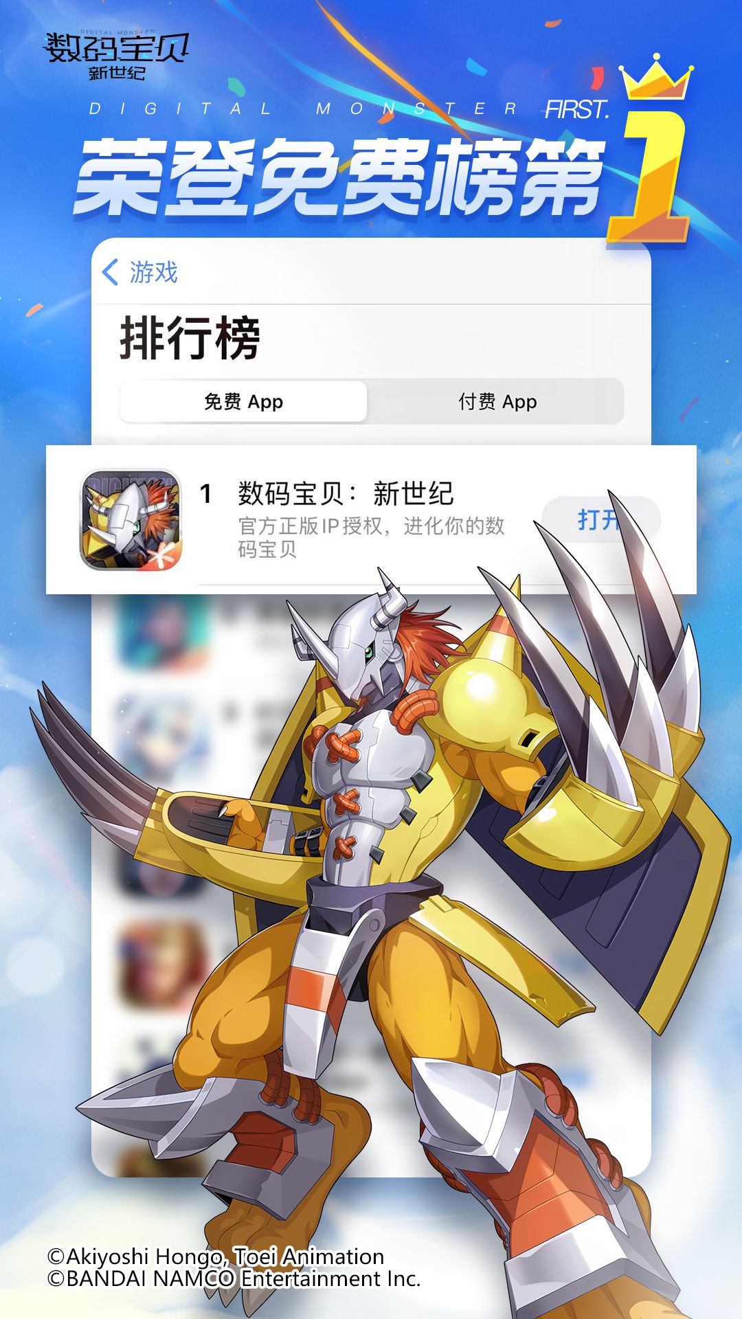 《数码宝贝:新世纪》登顶iOS免费榜第一!限时召唤与数码挑战赛明日开启!