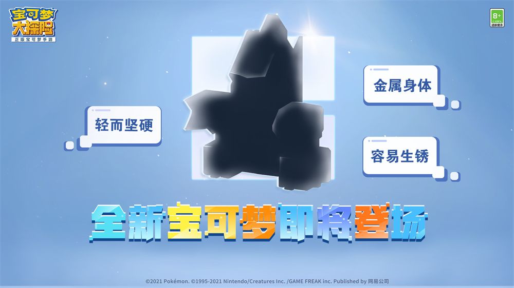 对于这位神秘的访客,《宝可梦大探险》在前期爆料中仅仅给出了三条线索,分别是“轻而坚硬”“金属身体”和“容易生锈”,这意味它与金属有着密不可分的联系,再结合剪影中它站立的姿态和体型,便能得出最终的答案——铝钢龙!
