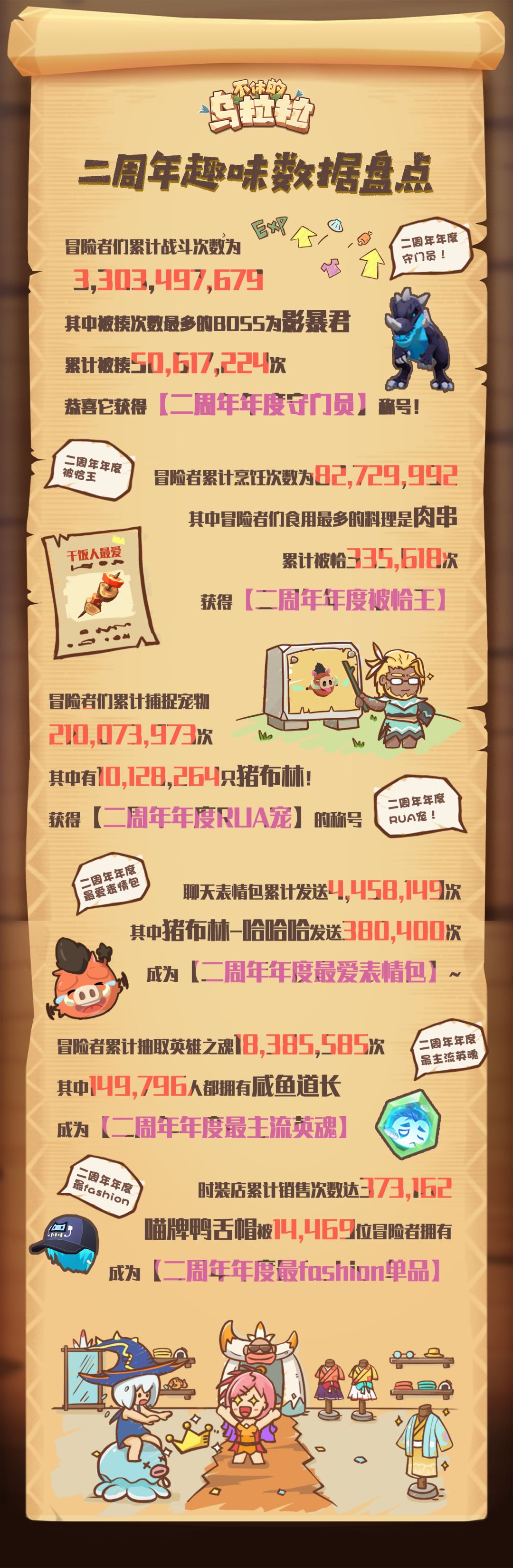 今天是不休的乌拉拉2周年生日~老板娘想对一直支持和鼓励我们的冒险者说一句感谢!在接下来的日子里,我们一起来创造更多美好的回忆吧!