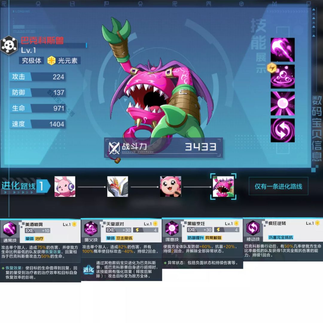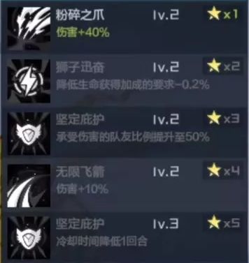 巴克科斯兽:得意技的加全队防御力和抗爆,解除控制状态(主要是这个,这套阵容很怕被控),以及被动技疯狂逆转(触发后能多抗一个技能),也是在第一波没有拿下对面后争取翻盘的机会
