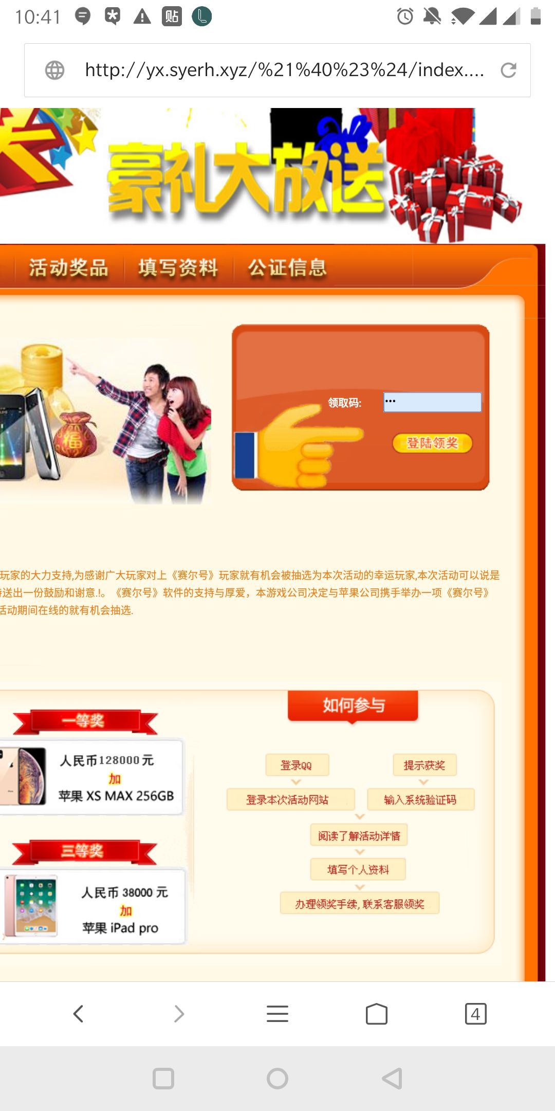 有个人突然加了我游戏好友,昵称忘记了,大概意思是是官方客服啥的,给了我一个QQ号2512661133,然后给了领奖码就把我给删了,然后QQ号给了我一个网站说是领奖。我寻思着这怎么那么像诈骗信息。。。求官方给看看,因为网站用的是赛尔号官方的名义,QQ也用的是淘米公司的名义,如果是诈骗信息,扩大了用户范围的话对整个公司整个游戏都不好。【因为里面有一点涉及了费用,还有真实个人信息】