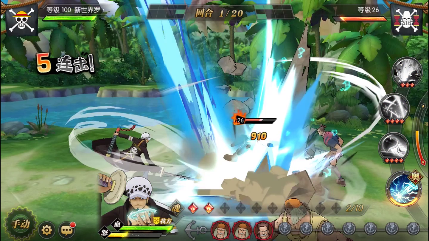 新世界罗的天赋大致可以分成两部分:心脏摘除&战斗基础。心脏,作为人体最重要的器官,“心脏摘除”必将对目标敌人造成难以弥补的伤害!这套机制简单来说,使得敌我双方两名角色产生关联,增强己方削弱敌方,在本方角色受到致命伤害时,敌方关联者同样受到致命伤害,并回复“始作俑者”新世界罗的血量并增加5魂玉。