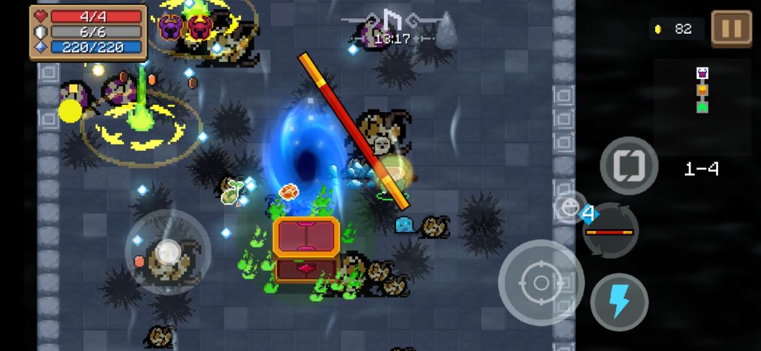 1-1~3-4:1-?必须打一只金面猴王然后拿到定海神针(利用地图中间的三个柱子跟boss打游击,尽量让自己随时能躲到柱子后面)。其他的嘛。。。用定海神针打彩蛋兔会非常爽,一棍子下去它召的什么东西都没了。打圣诞树人最好有紫盾,否则被撞两下就死了。2-?之前拿到散弹增加。不推荐打黑暗大骑士,它的攻击频率太快,子弹飞行速度也快。除了它以外,其他boss的子弹都能被第三形态的定海神针很好的消掉。3-?尽量不要打攻击太猛的boss(双幼龙),没绿盾就别打瓦克恩头目,打沙虫很费时间,也选择不打。有了紫盾打镭射幽浮就非常轻松,打祖兰的时候要注意弹幕过密的时候切换到武器第一形态保命。