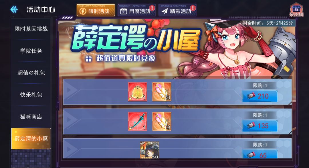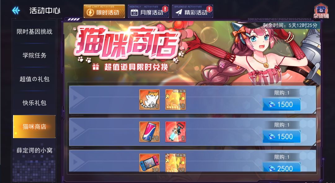 2、猫咪商店:活动期间可消耗钻石兑换活动道具及稀有奖励