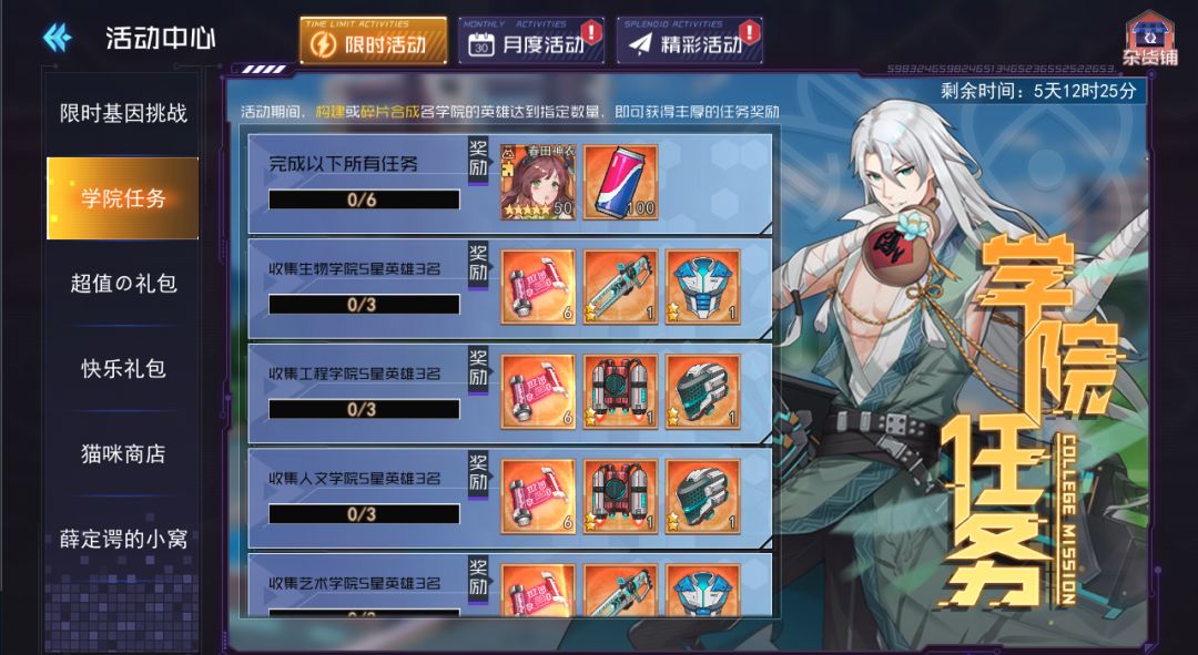 6、学院任务:活动期间完成指定任务可获得丰厚奖励。
