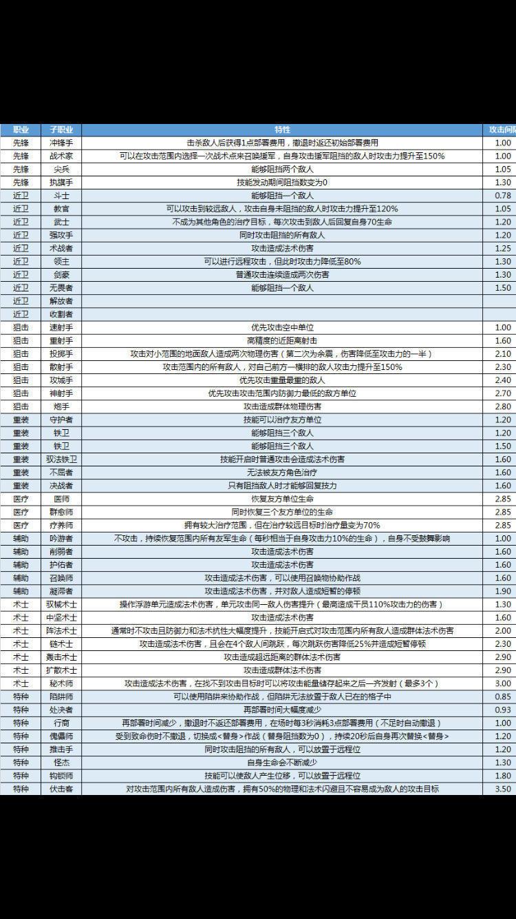其中:解放者:通常不攻击且阻挡数为0,技能未开启时40秒内攻击力最高提升至200%且技能结束时重置攻击力