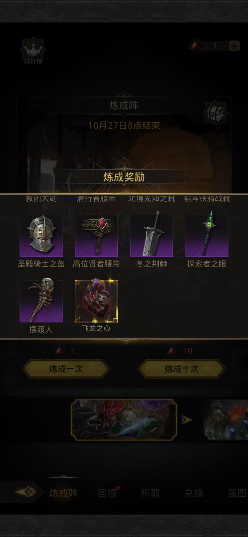 练成阵居然抽了三次圣器,后面都成了3000本位之玉了