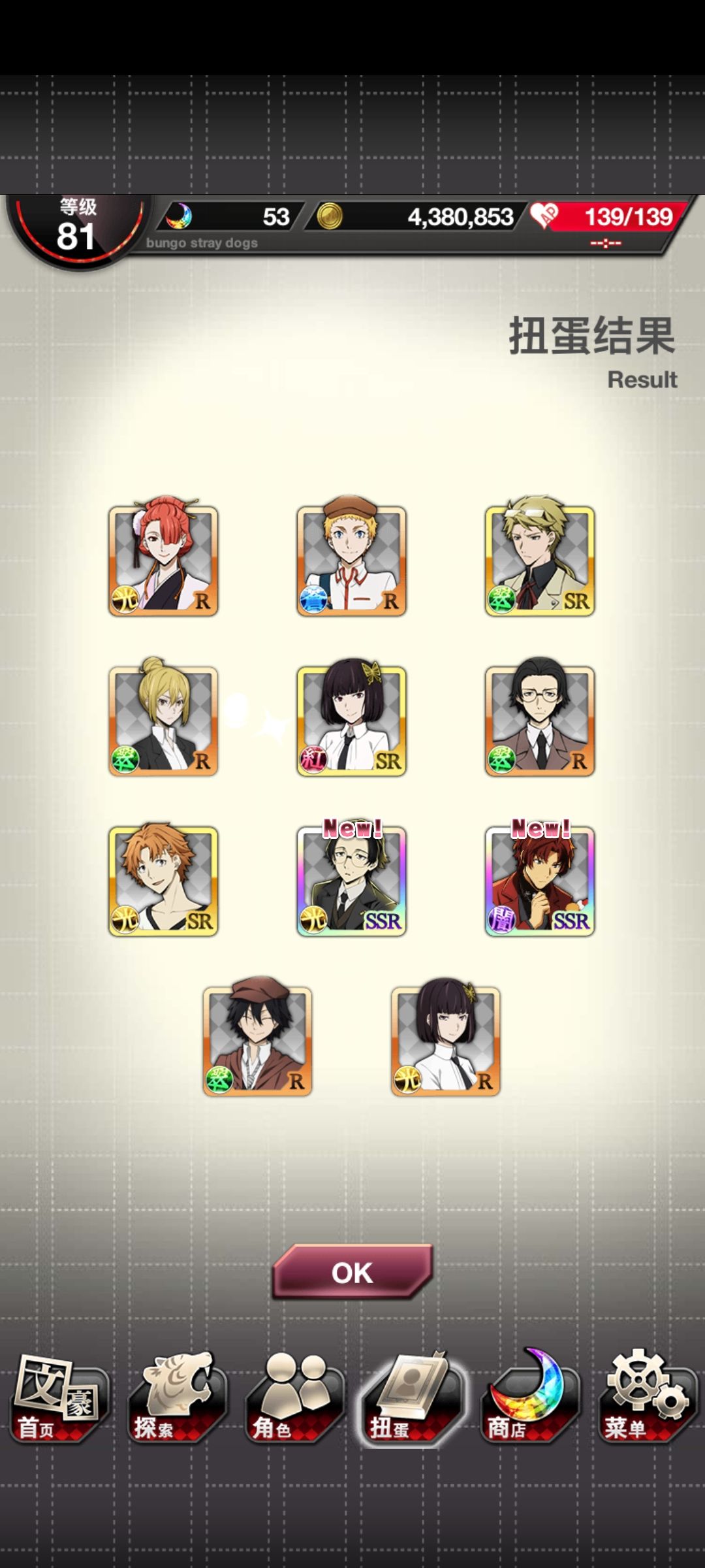 第一抽就来了织田作和安吾,第五抽才来了你...