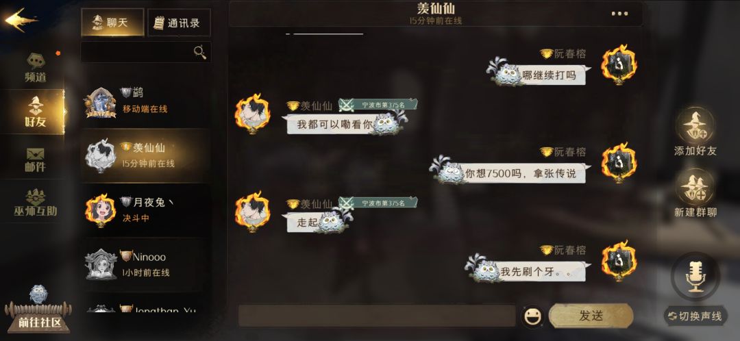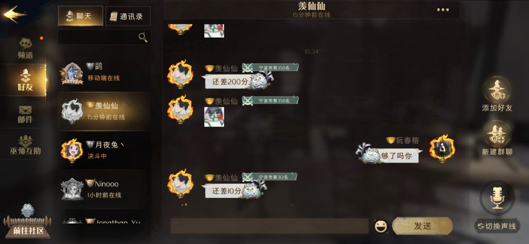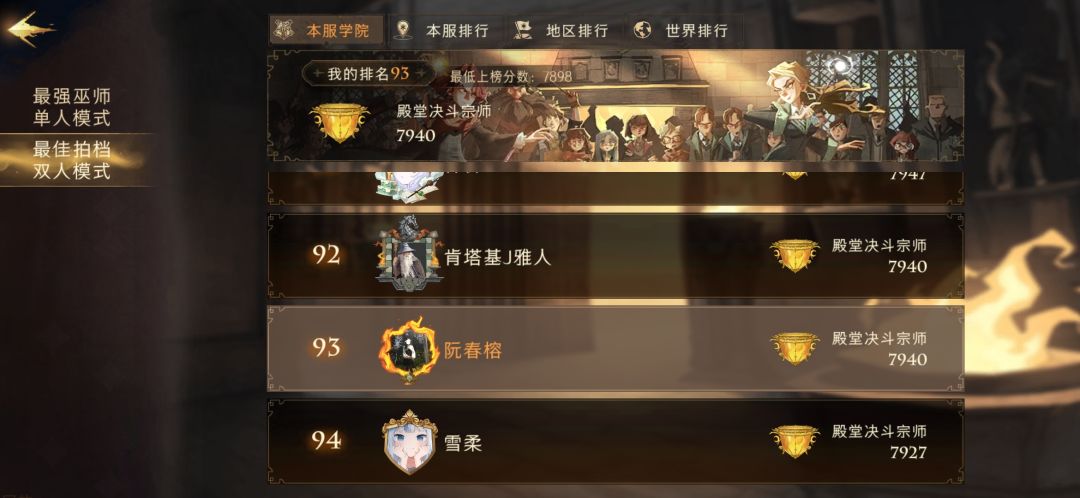 昨晚野排找的一个斯内普队友,29连胜。输了几局,记得清楚的就两个输的对局,输了一个海格牛牛15级。还有一个应该是语音一起玩的,两个卡姐,两个水牢,两个控制,直接先把一个打死,拉的次数都没了。应该就输了4-5局叭。输了主要也是因为我昨晚刚玩,不怎么熟练。赫敏减费有时候没减到雷,有点小崩盘。有一局打得很精彩,打到白热化队友死了不能拉了,然后我一打二哈哈。可惜打对局多了把它堆不见了。没保存