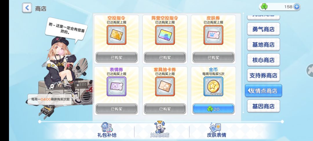 2.记得兑换本周友情点商店里的新抽奖卷。(版本更新当天是周日)