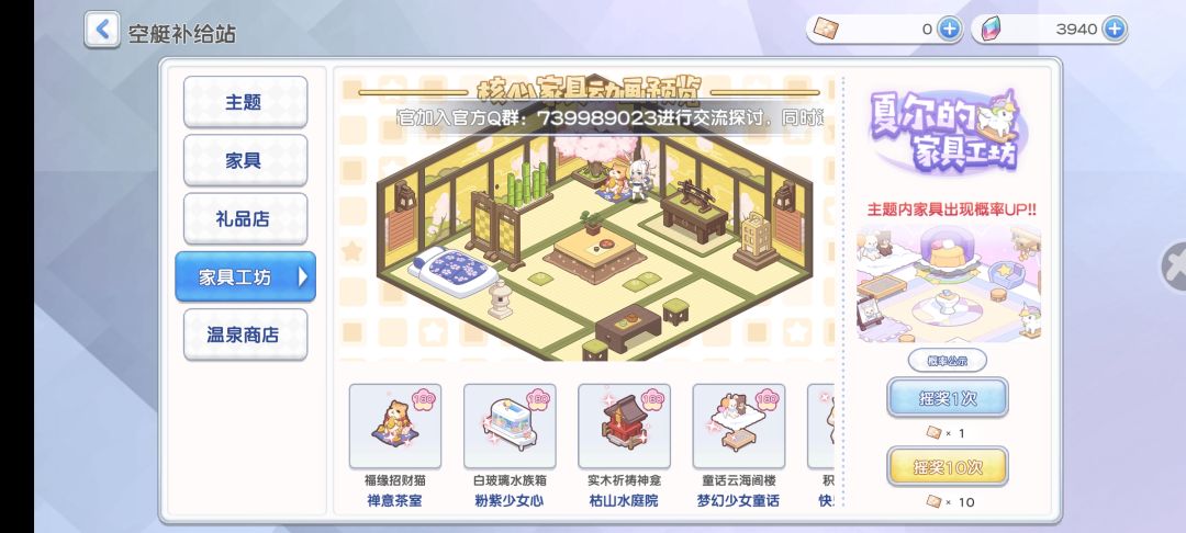 家具工坊,简称家具抽奖池,2000钻十抽,平民白嫖福利。(每周友情点可兑换十张卷)