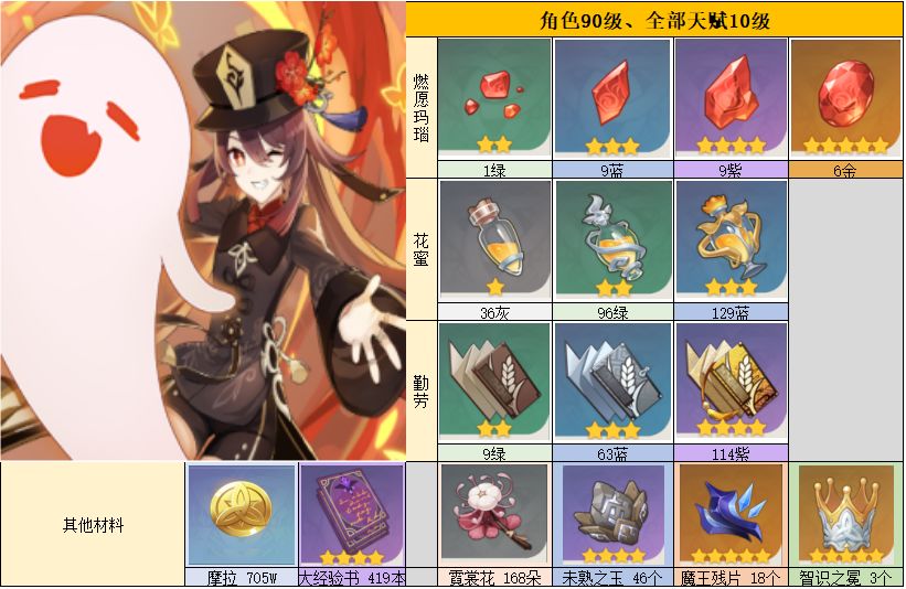 胡桃90级,技能拉满所需材料