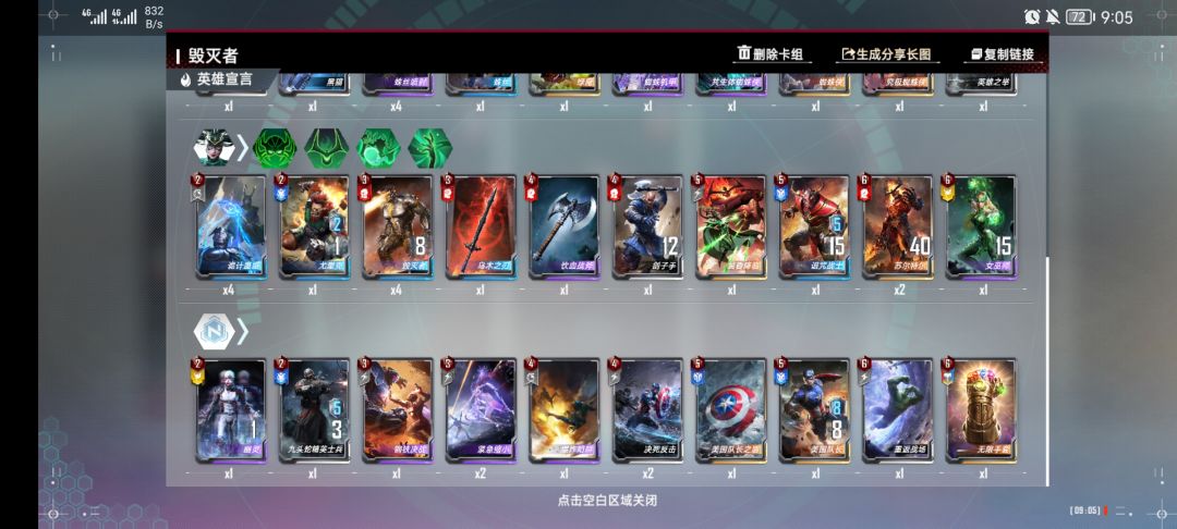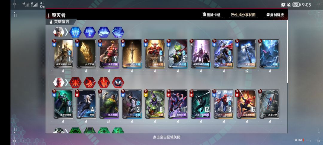 人物牌:2费尤里克,3费毁灭者,3费猎鹰,3费蛛丝,5费蜘蛛侠以及6费苏尔特尔(两张可提高上限)。
