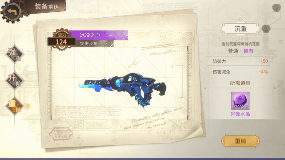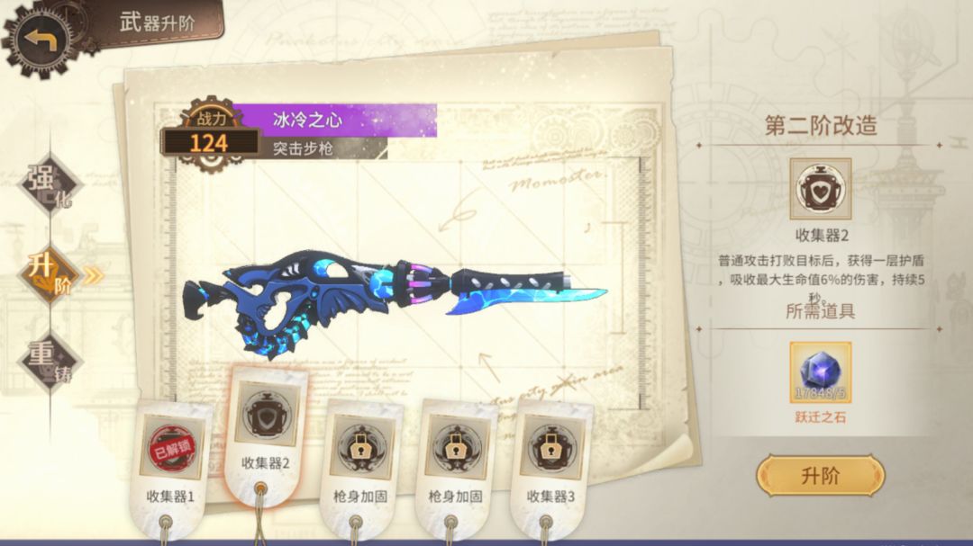 最基础的武器养护,耗费一定的常见资源,随等级小幅度提升武器攻击力。在等级允许的情况下将常用武器强化,是每个深潜者的基本认知。