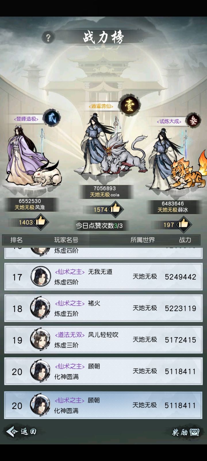 化神突破还不改金色仙术+6这是哪个鬼才想出来的?排行榜前面只有我一个人还在坚持没突破了,那个什么覆云之弈,和战力一点关系没有,全看谁先手?这东西昨天给我们看迷茫了,一堆五六百万的人卡在64强,一个三百万战力的从里面靠着运气进了八强赛,前三两个化神,这就是氪金体验?战力不如运气重要是吧,谁先手谁就秒谁,飞剑一下大半管接个修罗人没了?爬塔的怪现在打的怪已经是合体了,真就让我化神打合体?多亏了你游bug让去感受到了爽文主角的感觉,什么补偿福利我在b服毛都没看见一根,不把b服玩家当人?你游华为金色宠物自选,高级紫自选,还有一堆什么紫色秘籍碎片,一看b服只有一堆修bug的补偿,真就无语了😅玩法也就那么几样,自动推图和不自动基本没什么区别,一换属性就得重新调整阵容,想要平稳推图到后面基本不可能