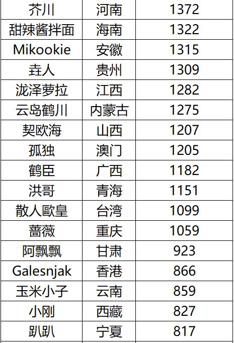 接下来让我们看看各省排名榜首的小伙伴都有哪些吧~