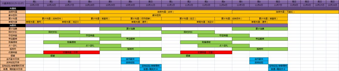 砸蛋、金币副本双倍、武将经验双倍、宝物经验/装备精炼双倍、