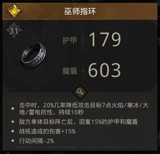 这里只说核心C的,第一优先词条为战吼增伤,完美情况下战吼增伤为90%:武器15+衣服15+腰带15+手15+脚15+戒指15(戒指使用锻造产出的橙色戒指洗出15战吼+5间隔+7雷火抗性降低为毕业,前期洗橙装建议都洗戒指和雷伤头)。