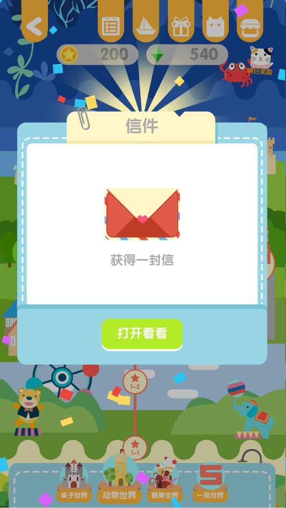 当通过动物世界第3关城堡时,会收到一封动物的信件。