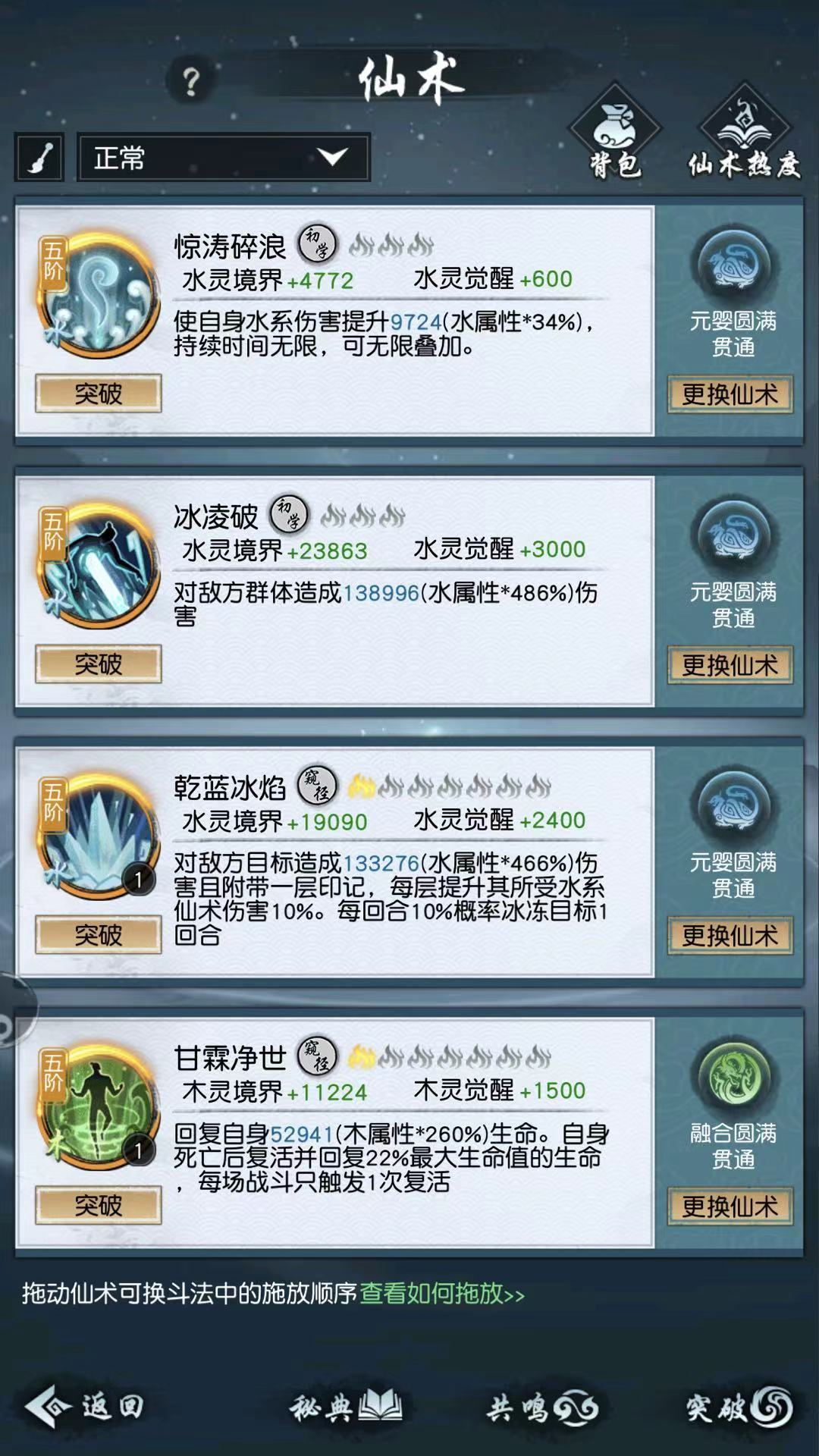 其次功法建议为水系,优点在于爆发高控制强,技能易获得。