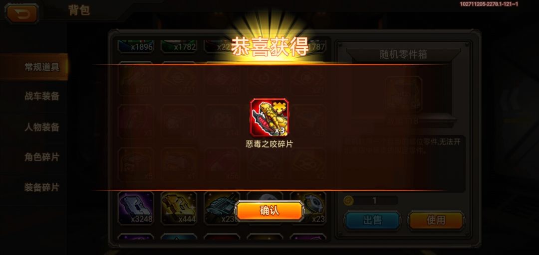 已经13个碎片了,还差4个箱子,就可以有毒蛇了,如果有毒蛇,就只剩3个红色武器了