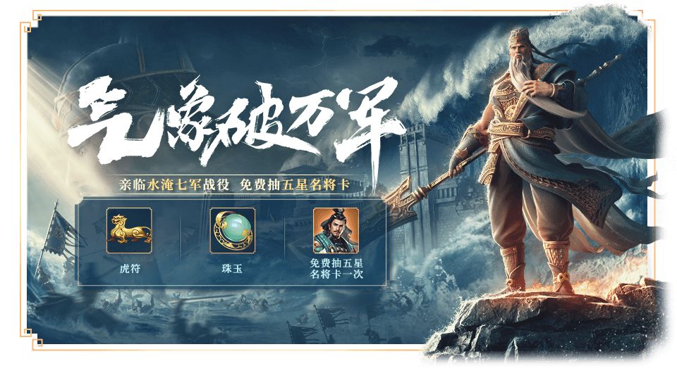 活动奖励主公们完成水淹七军主题关卡达到指定次数,可以免费抽取一次五星名将,主公们还有机会抽出三皇等强力名将哦!(PS:目前处于S1~S3赛季的主公与处于备战区、巅峰赛季的主公的卡池会有所区别。)
