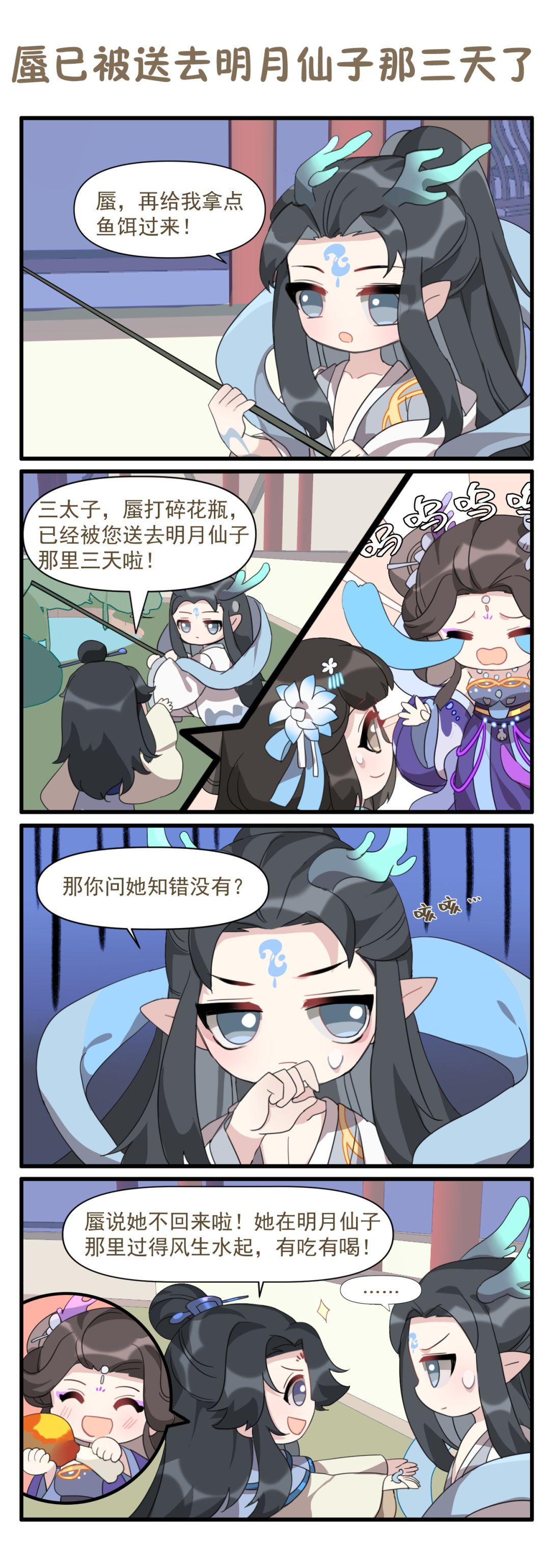 看来珑是没想到,原来蜃在明月仙子那里过的那么好!每天有吃有喝太羡慕了,明月仙子,你还缺仆人吗?很帅的那种,看看小官官吧~~