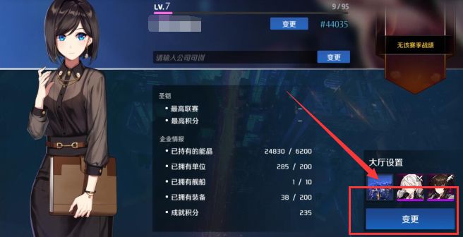 在主界面点击左上角的公司等级,之后再点击右下方“变更”按钮,即可自定义主界面待机伙伴啦~