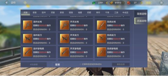 大荒武器主要分为三大类,近程武器、远程武器、异能武器。近程武器有15种;远程武器有16种;异能武器有6种。