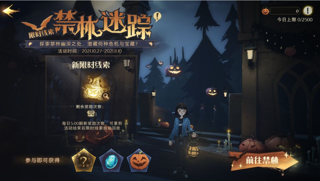 【禁林迷踪】PVE获取代币入口。新增两个禁林,金色限时禁林【消失的快乐】和【异响之兆】。两个限时禁林将在万圣节活动结束后不再开放,需要注意的是【异响之兆】为5人组队禁林,并且【异响之兆】将在10月31日才开启线索掉落。禁林线索获取方式为通关蓝色禁林随机掉落,每天每个限时禁林都只能获取一次奖励,当天未消耗的奖励次数将会累计到第二天。每天通关活动禁林能获取的代币数量在1200左右。