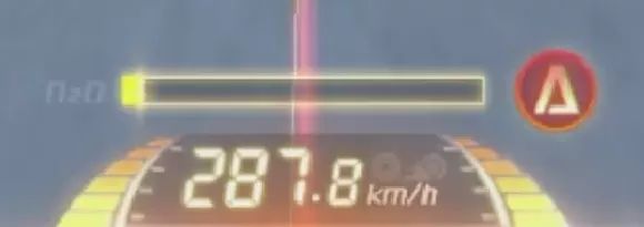 当成功获取月神氮气并释放后,会触发野性追踪尾翼特有技能,在码表右侧会有一个明显的三角形提示,快速滚动增加的速度,澎湃爆发的野性之力,感觉整个车都充满了能量将要飞出赛道!
