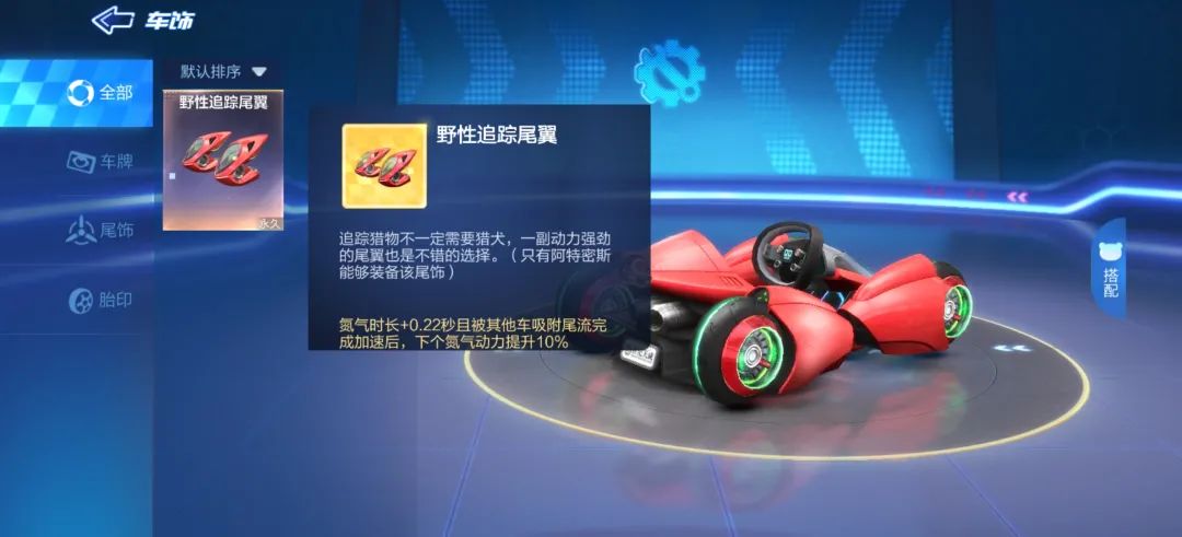动力方面则更为恐怖,在阿特密斯专属尾翼野性追踪尾翼的月神氮气强化装置加持下,氮气时长增加0.22秒且被其他车吸附尾流完成加速后,下个氮气动力更是瞬间提升10%。