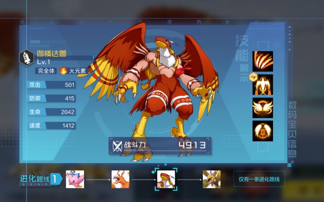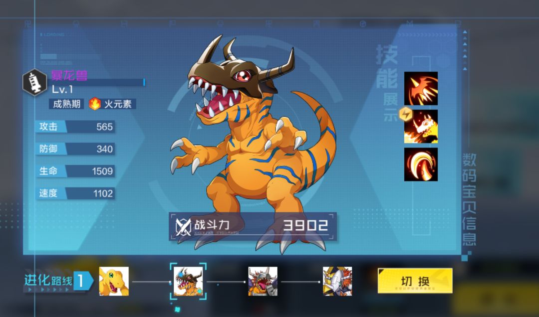 首先跟着就是跟着主线任务走,然后抽卡最开始的大概阵容是暴龙兽疫苗火系宠物,新月兽数据水系宠物,天守使光系疫苗宠物,迦楼达兽火系疫苗宠物,加鲁鲁数据水系宠物,可以刚好组成3疫苗+2数据的加成。获得+15%攻击和生命的加成。前期推图比较实用。