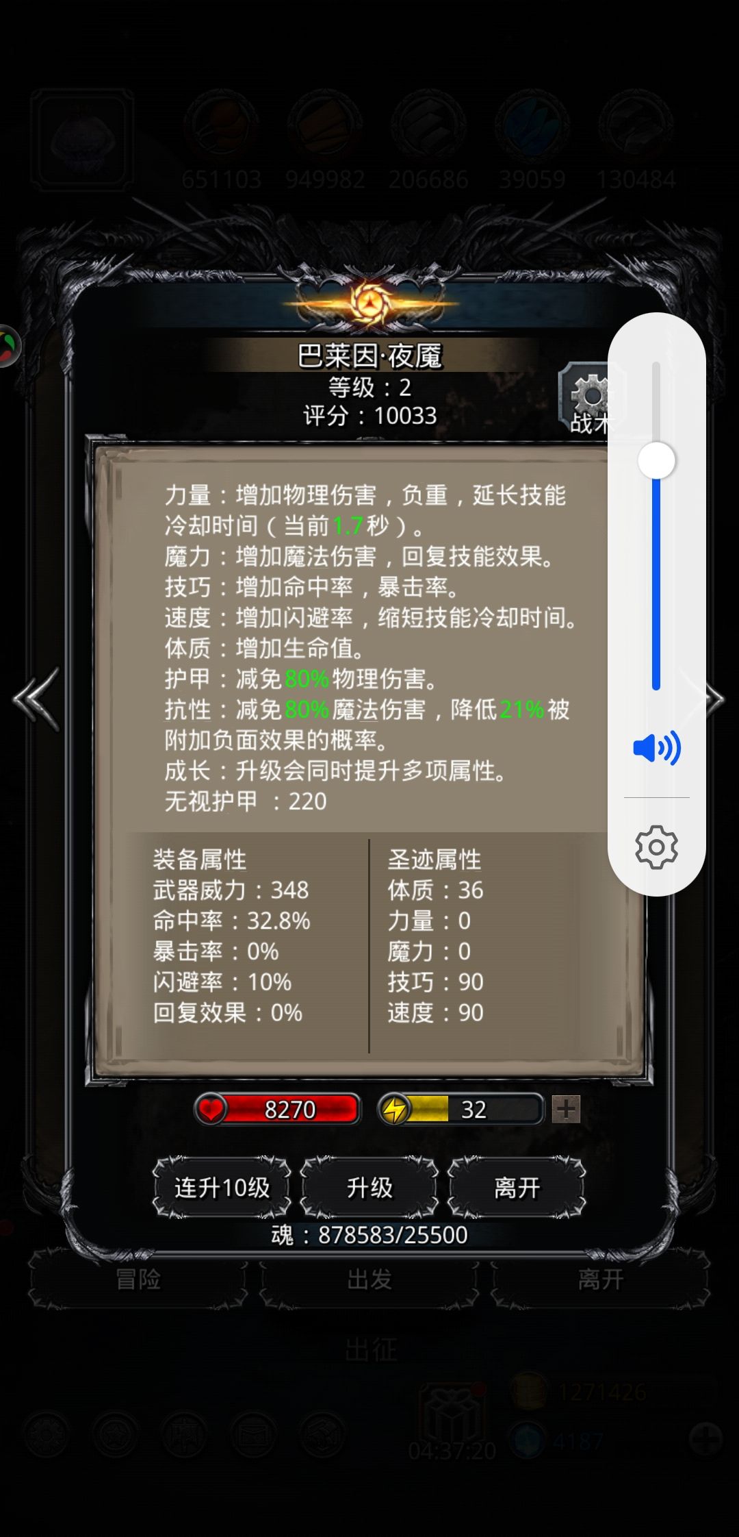 忘记截命中图了,反正我记得命中比61低,属性差不多,看脸多试几次就过了,我这属性一次差3万,然后就是差10万左右,后来丢着挂机,结果就过了,锻造83,还是比较看脸的
