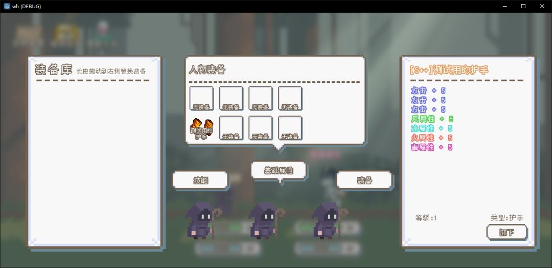 目前的进度刚做完装备系统,比较核心的技能系统没做完,剩下的就是关卡设计,我尽量抽时间做完!