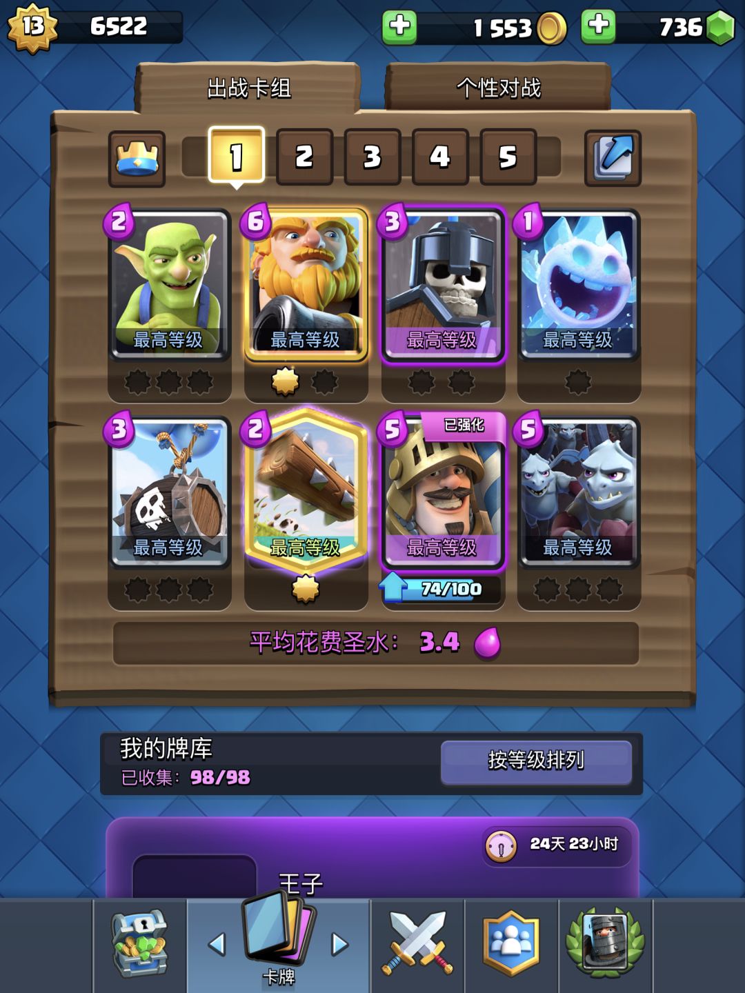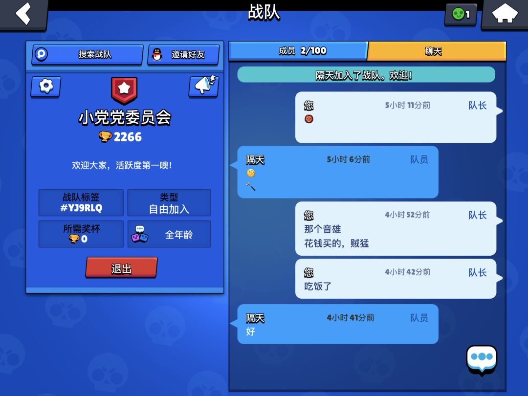 本人皇室战争6000杯,部落冲突有满员高活跃度75胜率部落战部落一个,现在招募荒野乱斗可爱新人啦