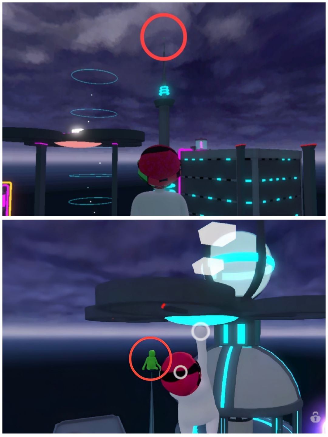 位置:在投篮那关附近,绕投篮图边上走一走,找到一个比较矮的楼,走上前往下瞅,就能看见一个蓝黑相见的洞,卡半身不遂进去就能看见。/也可以抓着篮球🏀飞到下面的洞里。/或者乘坐最后一关的飞行器直接进去。