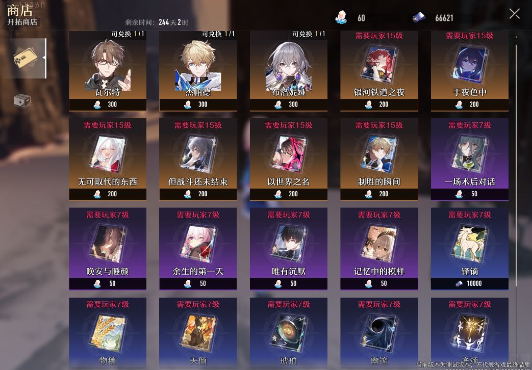 那么高稀有度的角色该怎么拿到呢? 本次测试版本中没有设计抽卡系统,是的,非洲人可以站起来了!你可以用材料兑换角色或光锥,只要你付出足够的肝......