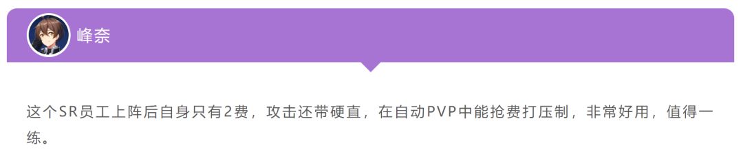 下面是一些自动PVP中好用的SR员工: