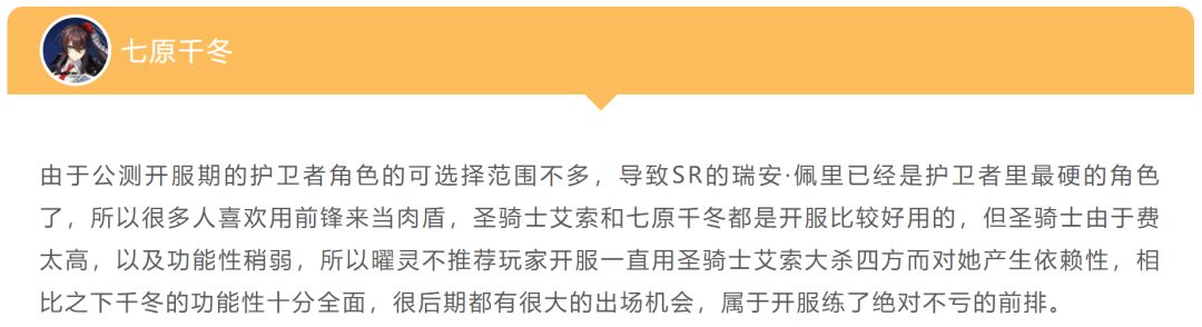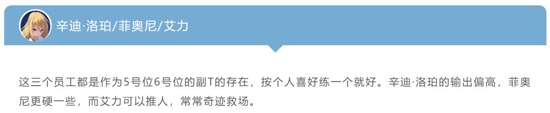 然后对于SR级稀有度的员工,曜灵建议不用强怼,如果刚好抽到了很多重复的SR,又刚好很好用,就迅速练起来,如果没有抽到或就抽到一张的话,即便是能刷碎片的SR,也最好考虑清楚到底值不值得,有没有更好的配队组合,其实靠上面的N、R加自选和开服的福利就已经能组成一队不错的组合了。