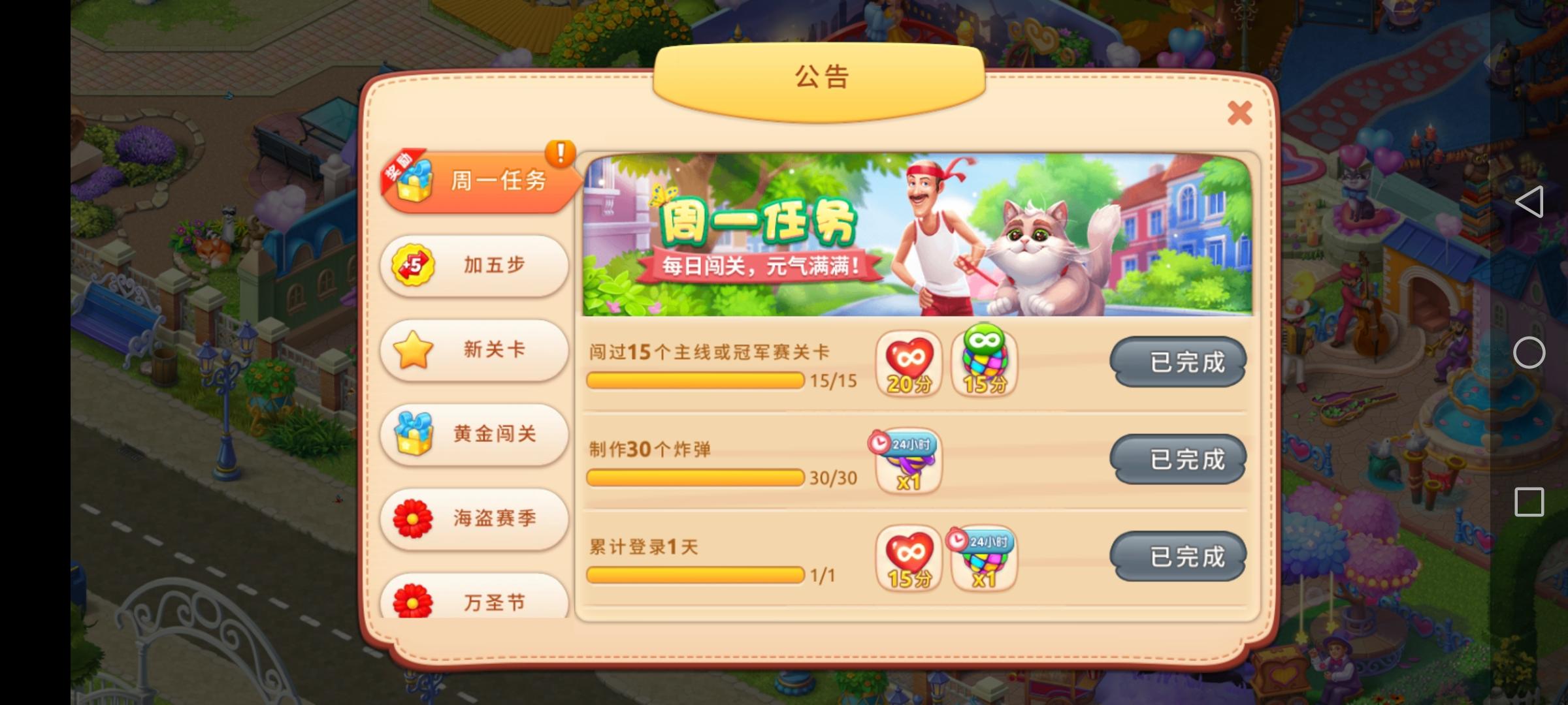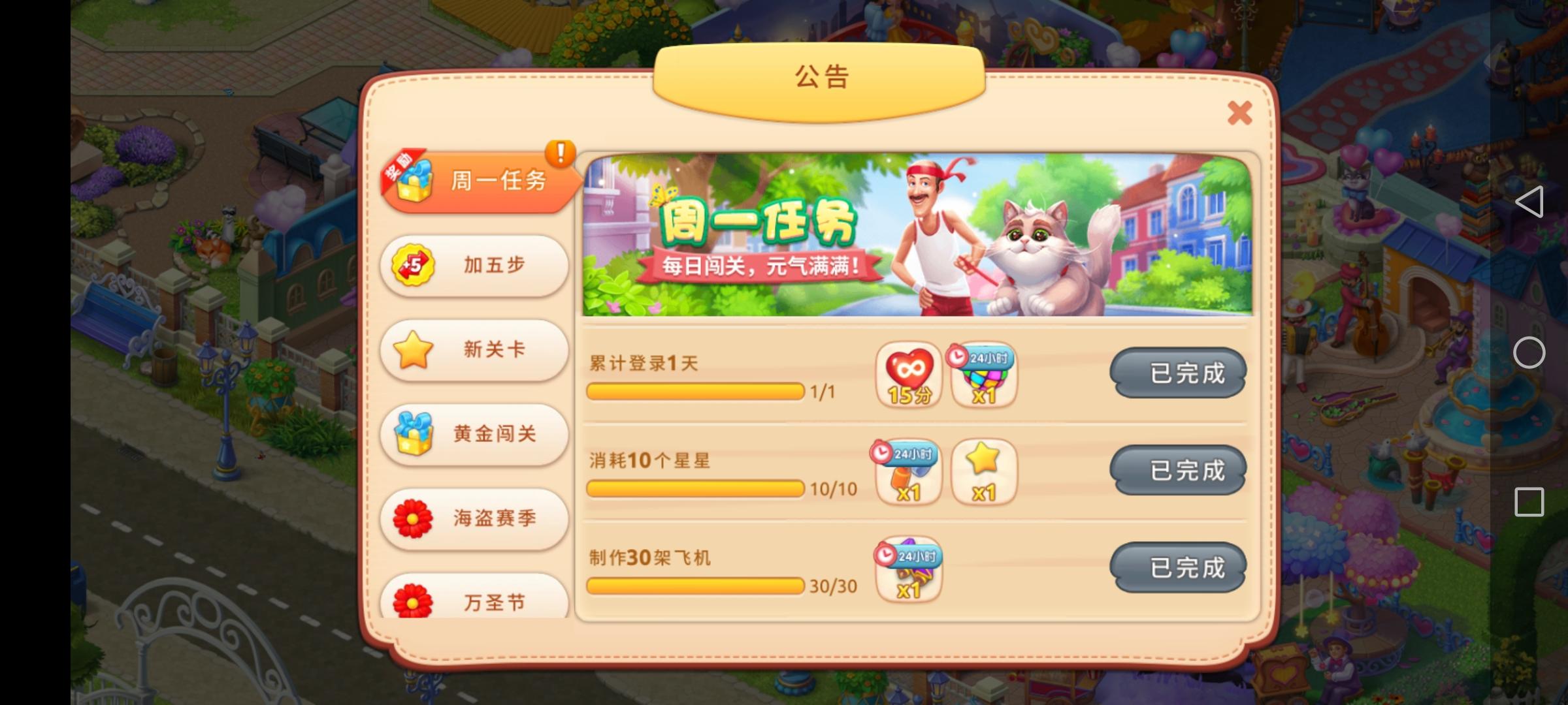 家园的这个周一任务一定要点个大大的赞,不用花金币,只需要过15关还有其他一些简单的任务就可以拿到奖励真不错👍