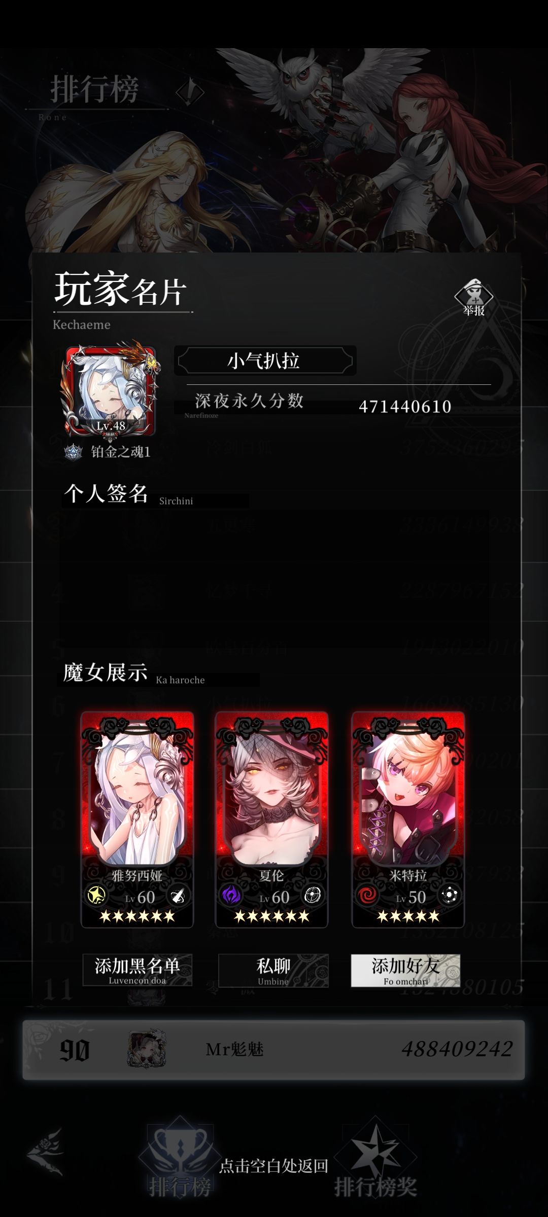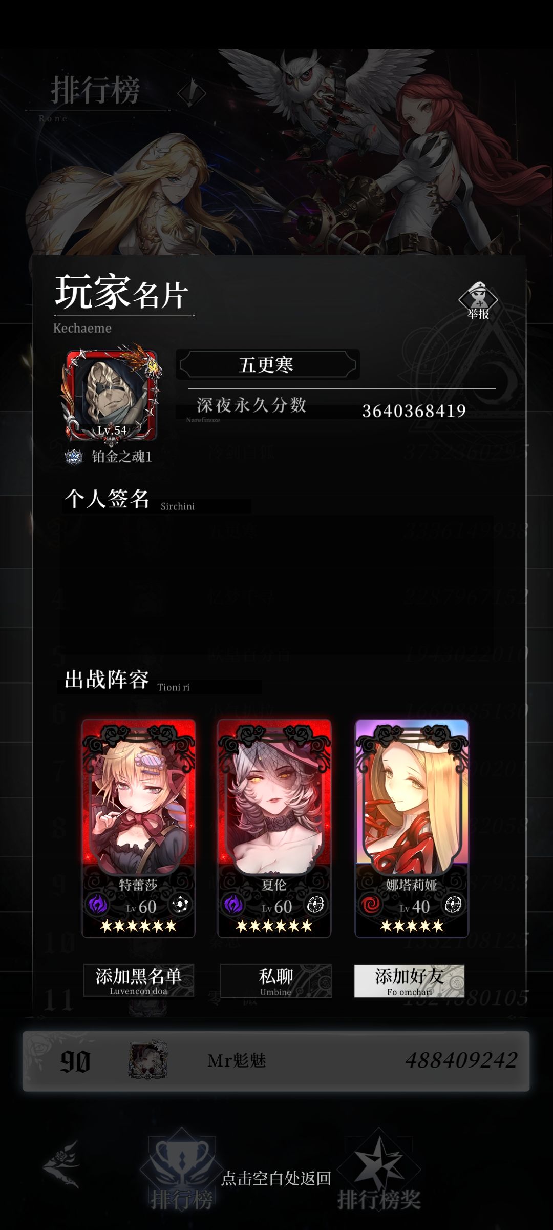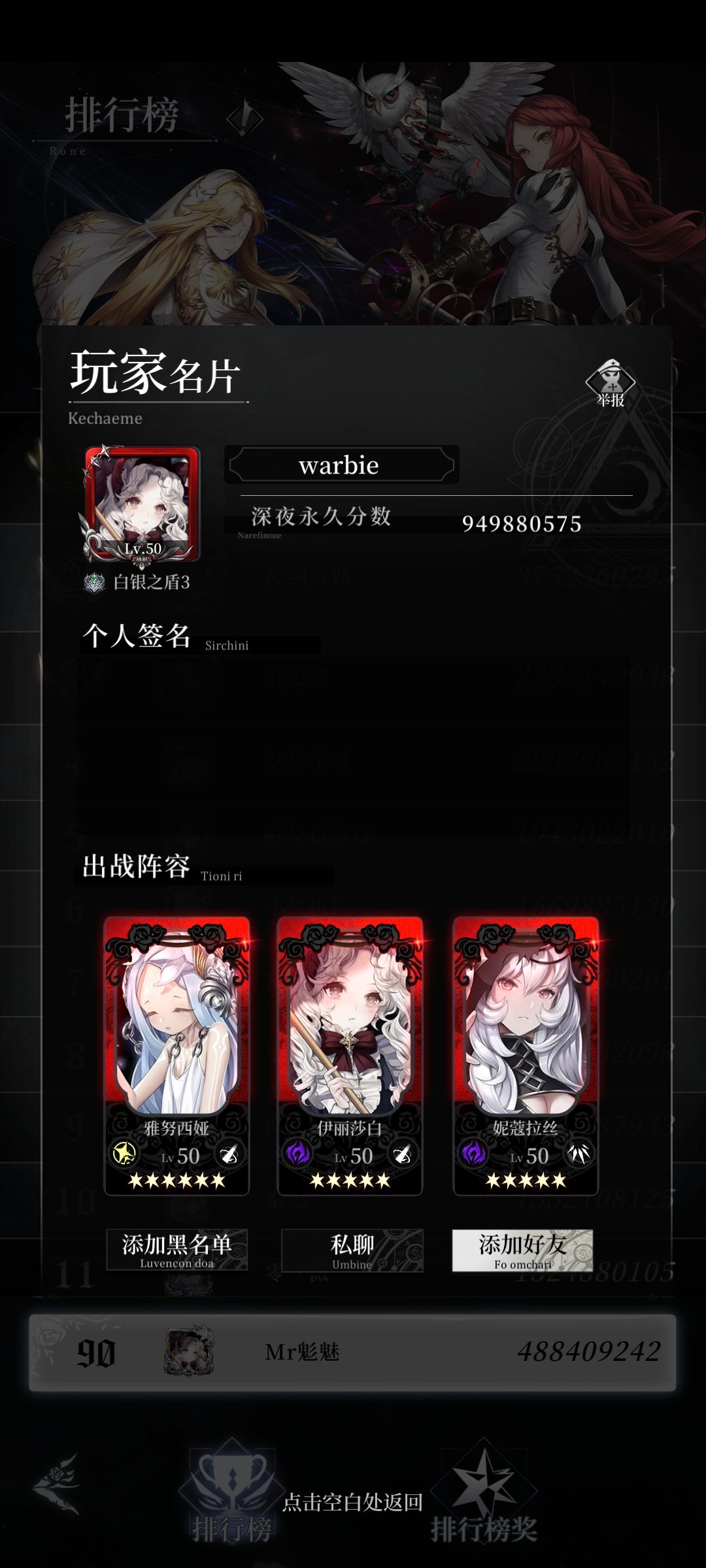 榜3,33e双初始池6星氪佬,挂出来的糖果攻击高达恐怖的1w999,夏伦更是歌姬吧
