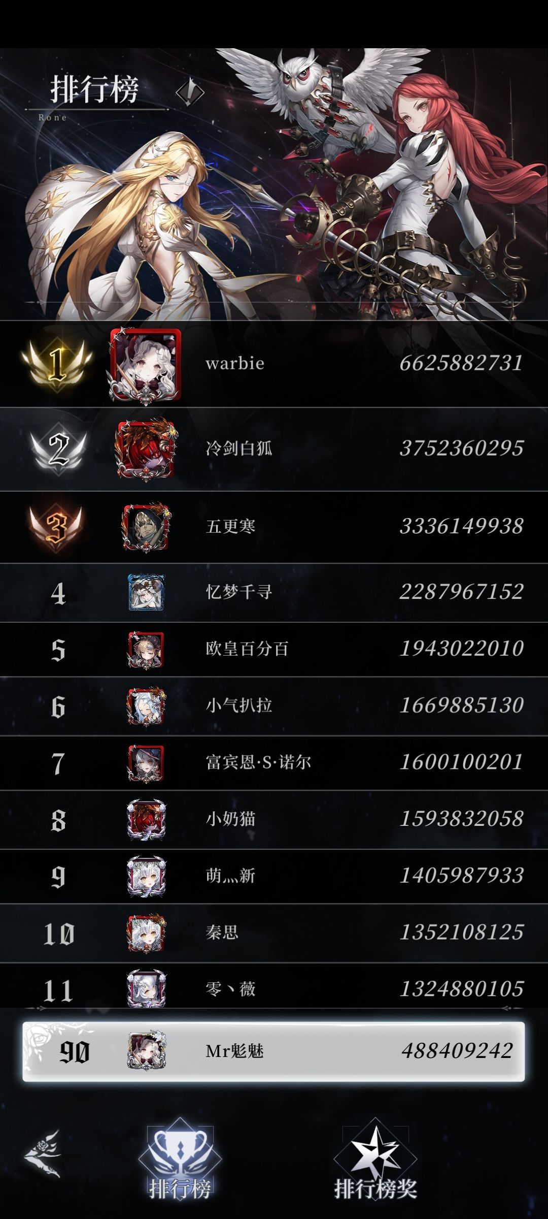 榜1,66e铁挂哥,手持至少2个非up5星氪佬,目测至少氪2k