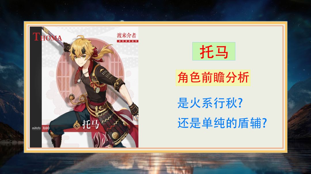 托马已经确定会作为胡桃池子的四星UP,在角色正式上线之前,先来一番前瞻分析,一起了解一下角色的玩法和强度。